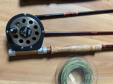 Vedo in blocco due vecchie canne per pesca a Mosca complete di mulinelli e code. Solo ritiro a mano non spedisco o.