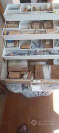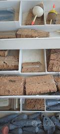canne da pesca due da lancio con mulinello e due da punta cmt. 6,20 e cmt.4,20 piu cassetta ricambi: ami, pesi,galleggianti, lenze da fondo etc.