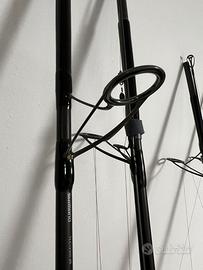 Vendo 4 canne Shimano Tribal Long Cast 12” piedi da 3 libre con anelli e porta mulinello a vite Alps montati da nota azienda di Faenza una canna presenta per rottura accidentale la sostituzione della vetta che non compromette assolutamente l azione della canna in più si vende per ogni canna due fasce per tenerle chiuse assieme come in foto la loro sacca singola non in foto più la sacca in foto Chub da 5 canne con porta picchetti porta bastone guadino e bastone incorporato ma estraibile per tenere rigida la sacca in questione ogni canna al suo interno è ben divisa e come muli i big ci stanno molto molto bene ogni cerniere e strappi di chiusura è perfettamente funzionante nel kit metto anke 1 canna a tre pezzi Daiwa da 3,60 metri da 2 3/4” libre datata che però ancora da del filo da torcere a molte canne di adesso tenuta per marker e spomb canne che sono un gioiello ancora ….per il momento non divido i muli nn sono in vendita 520 prezzo trattabile per video e informazione contattatemi pure 348 0081902 consegna a mano uscita valle rubicone e province limitrofe FC RN RA