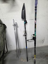 vendo 2 canne da surf, da 4.20 più mulinello trabucco nuovo, portacanne e tripode in alluminio,possibilmente in blocco .