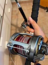 Salve vendo canne da drifting al Tonno, canne carrucolate shimano, abbinate a mulinelli tyrnos 30lbs.
