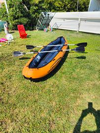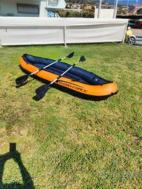 vendo per inutilizzo questa canoa molto resistente perché a il rivestimento in tela è può sopportare abrasioni come possono essere urti contro gli scogli. Sono presenti le due sedute e la pompa per gonfiarlo con manometro che non sono in foto.
