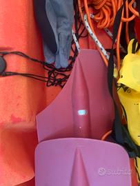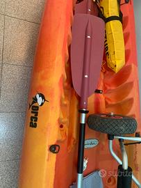 Canoa Orca 3 posti completa di 3 seggiolini rimovibili e 2 remi. Un remo ha una pala rotta come da foto.