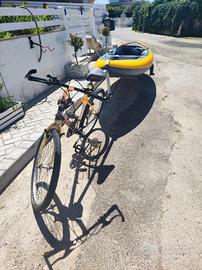 canoa pari a nuovo, con due remi, due giubbotti salvagente, pompa per gonfiare e sgonfiare la canoa e carrello per trasporto con bice