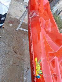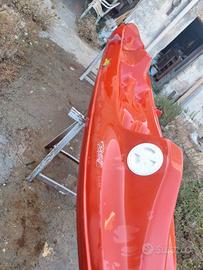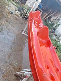 canoa biposto datata ma in ottime condizioni. gavone a tenuta stagna, carrellino artigianale e fermagli per pagaia compresi. prezzo poco trattabile. scambio con tender/gommoncino (no scollaggi, micro perdite o forature)