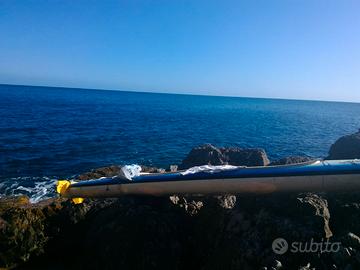 Causa trasferimento, vendo una meravigliosa canoa Alessandrini biposto con timoneria a pedale e gavone e due pagaie. Dico meravigliosa xchè mi ha permesso di viaggiare attraverso la natura del mare e non solo. Questo modello è un modello fuoriserie che Alessandrini ha costruito prima di ritirarsi dalla attività di designer e costruttore di canoe in vetroresina, affidabili, versatili, e esteticamente belle.