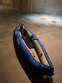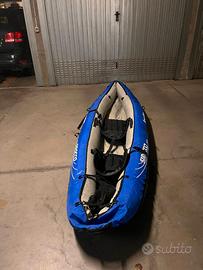 Fornita di sacca di trasporto, due pagaie e due sedili con schienale (la seduta di uno dei due sedili deve avere un buchino perchè non resta gonfio)