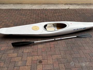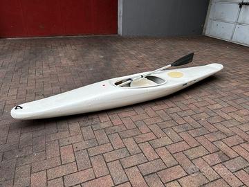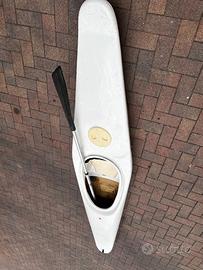 Canoa in vetroresina a un posto, leggerissima e maneggevole, lunga 2,90m, comoda da trasportare