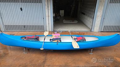 Occasione imperdibile per appassionati di sport acquatici! Vendo una splendida canoa canadese a tre posti, ideale per escursioni rilassanti su laghi e fiumi calmi.