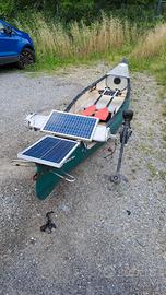 Vendo canoa canadese Esquif Prospector 15 per inutilizzo. La canoa é attrezzata con motore elettrico Minn Kota 360W fuoribordo con pannelli solari e centralina per ricarica (batteria non inclusa), telo di copertura, set di remi e due gavoni portaoggetti (uno sigillato). No spedizioni e prezzo trattabile.
