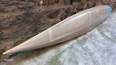 Canoa vetroresina con pagaia in legno.