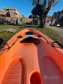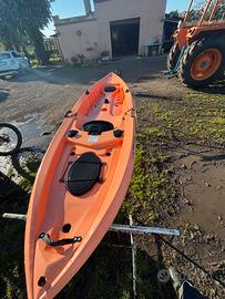 Vendo canoa da pesca lunga 3 metri, colore arancione ben visibile in acqua.