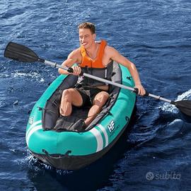 Canoa gonfiabile ad un posto marca Bestway mai utilizzata completa di pagaie, gonfiatore e zaino per il trasporto Lo zaino non era compreso nell'acquisto originale e l'ho dovuto comprare a parte della marca Sevylor Molto robusto e con lo spazio apposito per remi gonfiatore e accessori vari