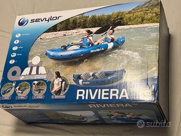 Usata praticamente una sola volta. Canoa ultra resistente a due posti, gonfiabile, quindi occupa pochissimo spazio. Regalo un altro paio di remi e pompa dedicata a mano che gonfia in 5 minuti.