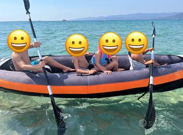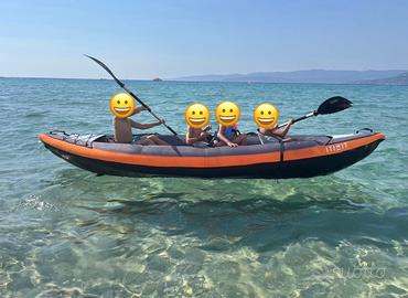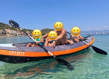 Come da titolo vendo canoa 3 posti Itiwit utilizzata al mare solamente 2 estati x 2 settimane per fare qualche giro e far giocare i bambini. La canoa è in perfetto stato. È stata risciacquata con acqua dolce fatta poi asciugare e messa nella sacca con borotalco. Sono comprese nel prezzo 3 pagaie smontabili. Rimango a disposizione per altre info