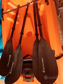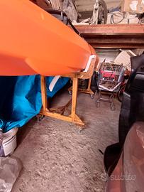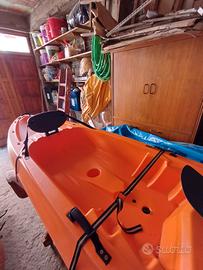 Kayak praticamente nuovo prodotto in Italia con inclusi due remi, seggiolini e carrello per trasporto in legno fatto a mano, unico difetto la mancanza di alcuni tappi tranquillamente reperibili sul sito Big mama kayak ovvero la marca del profmdotto ad un prezzo molto basso. prezzo trattabile