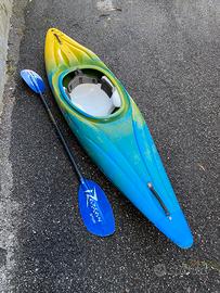 Vendo per inutilizzo Kayak monoposto (lunghezza = 2,72 metri) molto stabile e manovrabile. In buone condizioni, tenuto al chiuso, presenti normali e lievi segni di usura sullo scafo ma nessun danno strutturale. Usato prevalentemente in mare ma assolutamente adatto anche al fiume.