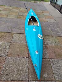 Canoa kayak in vetroresina, fondo piatto, molto stabile con pagaia.