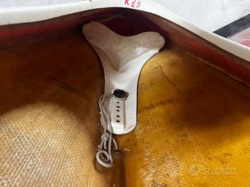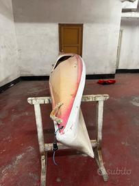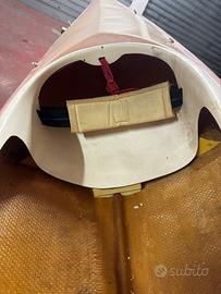Canoa Kayak in vetroresina da velocità anni 2000 completa e senza alcun danno. Schienale e poggia piedi regolabile, riserve di galleggiamento interne gonfiabili, maniglia di prua e di poppa, parà spruzzi con bretelle.