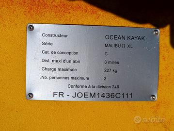 canoa -kayak da mare sit-on-top marca ocean kayak modello malibu 2 xl. 1 gavone stagno 2 portaoggetti. 4m x 86 cm, 30 kg. top di gamma. Lo possiedo da 10 anni, utilizzo 1 settimana per anno. Come nuovo.