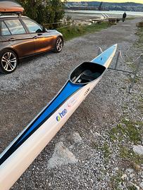 Vendo Canoa Kayak K1 Nelo 7, ML, F, 2022. Kayak da gara in ottime condizioni, primo proprietario. Aggiungo cover e pesi originali. Prezzo trattabile