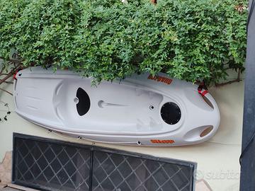 THE OUTDOORS DECATHLON - Canoa Kayak Ouassou Monoposto Grigio + pozzetto impermeabile a prua + sedile; No pagaie. Perfette condizioni.