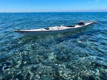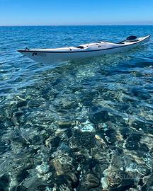 Causa inutilizzo, vendo kayak da mare Seabird modello Scott MV, in vetroresina/kevlar. Provvisto di 4 gavoni; due grossi (uno a prua e l’altro a poppa), uno portaoggetti davanti al pozzetto e uno medio dietro il pozzetto. Dotato di skeg direzionale a scomparsa. Misura: 520 cm Lungh., 56 cm Largh., Pozzetto 80x40 cm. Peso 23 kg. Il kayak é adatto a qualsiasi condizione di mare. Usato solo nella stagione estiva. Come nuovo. Compreso di Paraspruzzi MAI usato e carrello per trasporto come da foto.