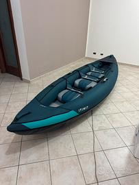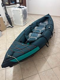 Canoa gonfiabile 3 posti modello touring completa di 2 pagaie, adatta sia per il mare che per fiume-lago,vendo per passaggio a gommone,completa di borsa da trasporto e pinne direzionali,sedili staccabili con possibilità di viaggiare sia come singolo o in coppia o in tre, canoa sempre sciacquata dopo ogni uscita.