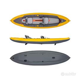 Kayak gonfiabile robusto con fondo Dropstitch, equipaggiato con due sedili gonfiabili. Comodo, stabile e performante, asciuga in fretta. Ideale per tutte le età.