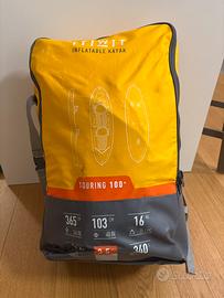 Contenuto: kayak, sacca, kit di riparazione, 3 pinne, istruzioni, adattatore di gonfiaggio, cinghiolo di chiusura.