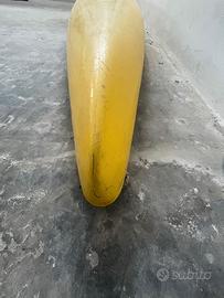 Vendo canoa O’Neill, costruzione in vetroresina, da revisionare e restaurare. Ottima base per un progetto di restauro o per uso amatoriale. 📌 Caratteristiche tecniche: Marca: O'Neill Materiale: Vetroresina Lunghezza: circa 3,5 metri Colore: Giallo Seduta interna con imbottitura e cinturino Corda di trasporto anteriore e posteriore ⚠️ La canoa presenta segni evidenti d'usura, graffi e qualche scheggiatura (vedi foto). Necessita interventi di restauro per essere completamente operativa. 🎯 Ideale per appassionati, collezionisti o per allenamenti in acqua piatta dopo la riparazione. 📍 Solo ritiro in zona: Monopoli , no spedizione! 📲 Per info o per visionarla, contattami in privato.