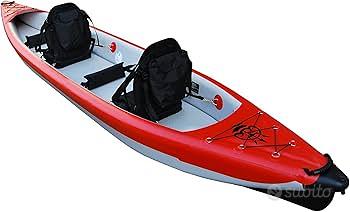 Canoa gonfiabile Poseidon 2 posti, 3 camere di gonfiaggio, completamente Drop Stitch con PVC 1000 dinari rinforzato. Raggiunge una rigidità eccellente, sia al pagliolato che sui fianchi laterali; chiglia rigida a prua e poppa. Ottima per due adulti più due o tre sacche bagaglio. Ideale per uso marittimo. Comprese 2 pagaie, sacca trasporto tipo trolley, pompa manuale, kit di riparazione. Usata per due vacanze estive, ottime condizioni. Posso abbinare una pompa elettrica, che vendo separatamente a 100 €, con presa per auto.