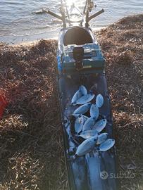 Possibilità di acquisto, dopo accordo, di svariata attrezzatura,pagaia in carbonio, giubbino, gonnellino nuovo, ecoscandaglio, carrello, canne di alto livello e molti altri accessori.