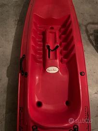 Canoa rigida FUNNY RAINBOW Site on top, autovuotante con impronta anatomica Rete porta oggetti, 2 maniglie per trasporto pagaia doppia da canoa smontabile molto stabile in mare anche con onda Dati Tecnici: Lunghezza: 294 cm; Larghezza: 72 cm; Pozzetto: 120×48 cm; H. punta: 34 cm; H. Coda: 16 cm; Peso: 19 Kg; Peso canoista: 48÷98 Kg •Maniglie Touring; •Tappo di svuotamento; •Foro di ancoraggio; •Vano centrale portaoggetti; •Rete elastica portaoggetti;