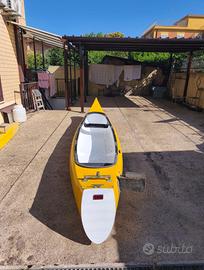 Canoa canadese con galleggiante aggiuntivo MT 5 con motore elettrico Yamaha senza batteria può montare fino a 7cv ideali per laghi fiumi caccia come da foto