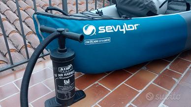 Canoa Sevylor Adventure gonfiabile 2 posti, comodissima per gite in mare e al lago. seduta comoda grazie ai sedili gonfiabili con schienalino, completa di due remi e pompa per il gonfiaggio e sacca per riporla sgonfia. Usata poco, vendo per passaggio a canoa rigida.