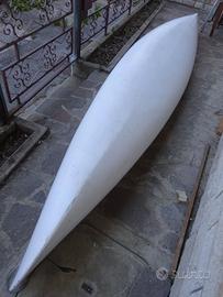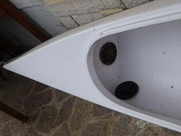 canoa in vetroresina 2-3 posti molto spaziosa e stabile 2 gavoni chiusi prua poppa lunga 5 metri completa di 2 pagaie