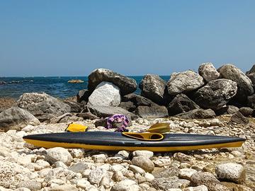 Causa scarso utilizzo vendo questa canoa originale Resinvetro ® completa di pagaia in carbonio, paraspruzzi e carrellino.