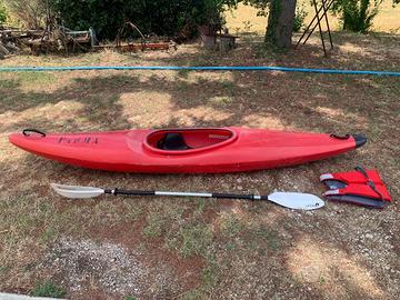Le canoe sono monoposto e adatte ai principianti. Nella foto si vede una delle due canoe, l'altra è identica ma gialla.