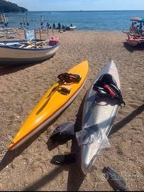 N.2 CANOE IN VETRORESINE COMPRENSIVE DI CUSCINI DI GALLEGGIAMENTO E PINNA DIREZIONALE ESTRAIBILE. NO PAGAIE. VENDO A 250 ENTRAMBE .VENDIBILI ANCHE SEPARATAMENTE .