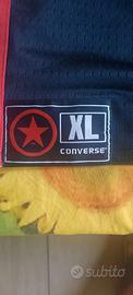 Canotta da basket Converse, taglia XL, colore nero con dettagli bianchi e rossi. - Perfetta per allenamenti o uso quotidiano. - Presenta una stampa del logo Converse e un piccolo logo ricamato sul davanti. - Si trova in ottime condizioni. Double face. Comprata e mai usata perche' troppo grande