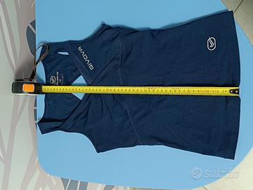 Canotta Givova con reggiseno integrato. Perfetta per la palestra o il tempo libero. Bella linea ad incrocio sia sul seno che sulle spalle. Dentro porta una mini canotta con elastico sotto che funge da reggiseno. Molto elastico. Il top esternamente è perfetto. Unico difetto: il reggiseno interno presenta tutti i filini degli elastici (vedi ultima foto) ma da fuori non si vede assolutamente niente. Date un'occhiata ai miei annunci: se vi piace più di un articolo chiedetemi di comporre un set e potrete così risparmiare sulle spese di spedizione!