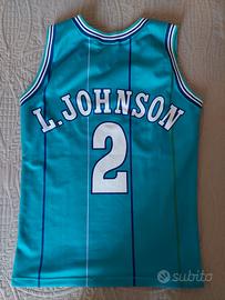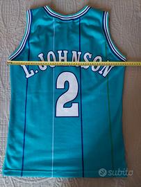 Canotta Champion X NBA originale dell’anno 94-95. Canotta verde da uomo del giocatore L Johnson. Prodotto vintage in ottime condizioni. Taglia M. Unico difetto rilevante due punti saltati sotto il numero 2 come indicato in foto.