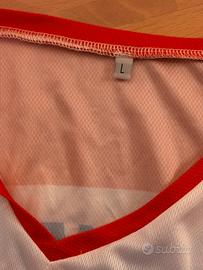 Canotta ufficiale della Pallacanestro Reggiana, modello con sponsor Grissin Bon sul fronte. Il capo è realizzato in tessuto tecnico leggero e traspirante, con bordi rossi e base bianca sfumata. Sul fronte sono presenti i loghi degli sponsor Emilbanca, Car Server, Ferrarini e il marchio Sportika.