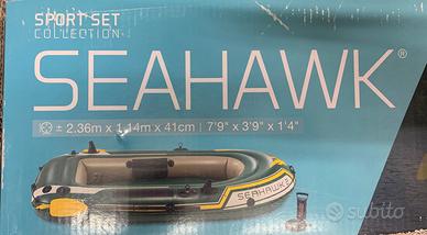 Vendo Canotto Seahawk 2 posti nuovo mai usato, completo di remi, pompa, porta canna da pesca e predisposizione motore elettrico.