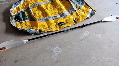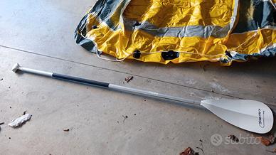 Canotto portata 190kg 2 adulti, MA HA UN DIFETTO, un porta remo è rotto quindi non si può remare, vendo a 15€. Si può usare con una pagaia, che vendo opzionale a 18€ oppure un remo da sup a 15€. Ha valvole comode per gonfiarlo e sgonfiarlo rapidamente