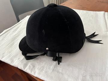 Cap casco equitazione velluto nero Fouganza C400 della Decathlon. No spedizione. Taglia 53 cm.