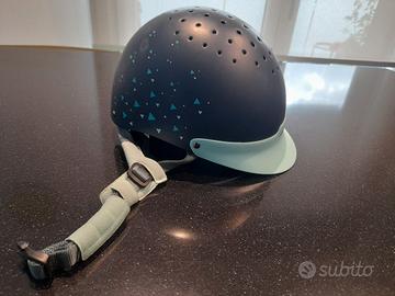 Vendo cap equitazione Fouganza verde turchese per cambio misura, resistente, certificato, regolabile con rotella posteriore, schiume sull’imbracatura e dentro il cap per il massimo comfort, taglia xs 48-52 cm.