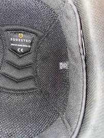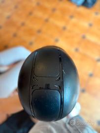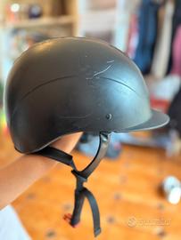 cap equitazione equestro nero taglia 55-57 (M) regolabile dietro con la rotellina, si può stringere e allargare. interno totalmente sfoderabile e lavabile. ha qualche graffio di usura di lato. cinturino di aggancio sottogola regolabile e foderato in pelle.