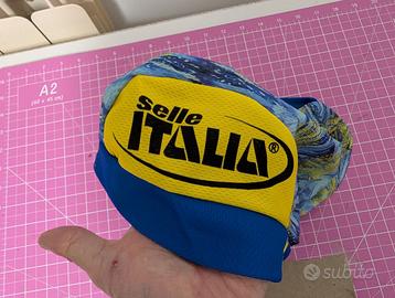 Vendo cappellino da ciclismo vintage brandizzato Selle Italia. Il pezzo è caratterizzato da una splendida grafica artistica che riprende i motivi della "Notte Stellata", con colori blu e gialli molto vivaci. Marca: Selle Italia Stato: Ottime condizioni vintage, elastico ancora in buono stato. Dettagli: Loghi stampati sui lati e sotto la visiera, lacci posteriori per regolare la vestibilità. Stile: Perfetto per collezionisti, amanti del ciclismo eroico o per un look urban/streetwear originale. Spedizione rapida e imballaggio curato! Ciclismo Eroico Cycling Cap